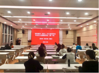 2022年10月28日晚上19:30,我院2022级学科教学(语文)研究生毕业论文选题指导会(第一场)于东校区图书馆213小型学术报告厅召开,李振中教授主讲,刘娟博士主持会议,2022级全体研究生到会。