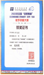 在2022年全国“田家炳杯”全日制教育硕士专业学位研究生学科教学(数学)专业教学技能大赛中,yL23411永利集团官网登录3位参赛研究生均获佳绩:佘旷怡同学获得一等奖,谭培芬同学获得二等奖,罗美莹同学获得优秀设计奖,实现了该项竞赛一等奖的突破。近日,我们收到了全国教育专业学位研究生教育指导委员会颁发的获奖证书。