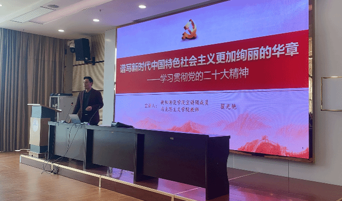 2023年3月7日下午,学校宣讲团成员、马克思主义学院教师翟光艳在东校区图书馆213学术报告厅为yL23411永利集团官网登录师生作题为《谱写新时代中国特色社会主义更加绚丽的华章——学习贯彻党的二十大精神》的报告,yL23411永利集团官网登录组织了在读教育硕士参加。报告会由谢伟华党总支书记主持。